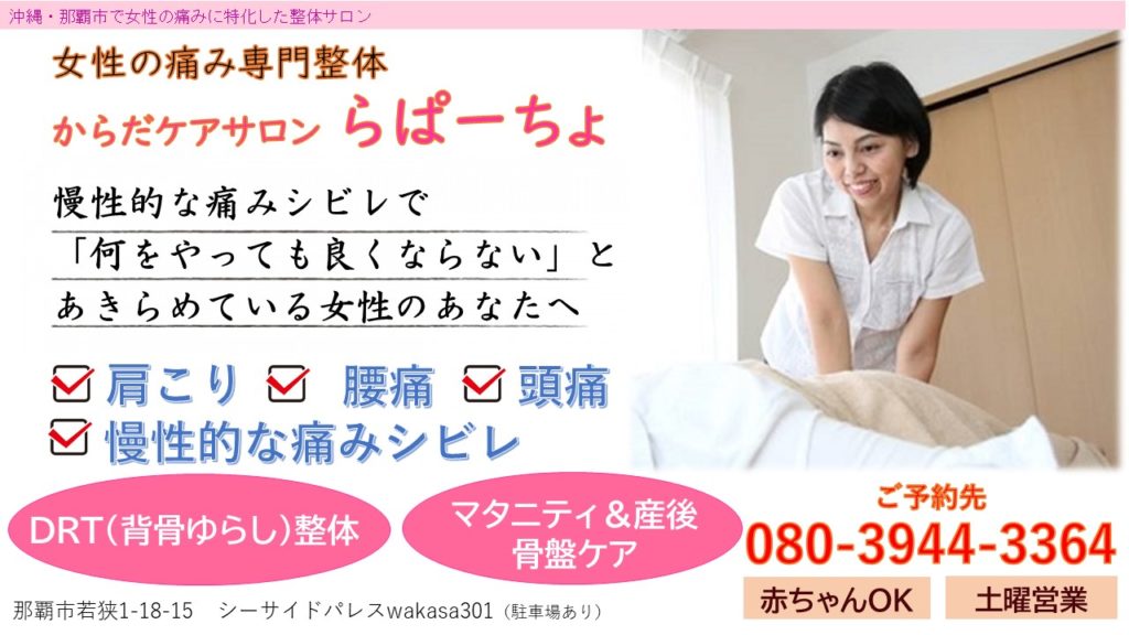 らぱーちょ」は女性特有の体の痛みや産前産後の体の不調に特化した整体院である。代表の垣添陽子氏は理学療法士の国家資格を持ち、長年施設やデイサービスでリハビリの業務に携わっていたが、自身の妊娠出産時の辛い不調や痛みの経験から産前産後の整体を勉強し、開業した。